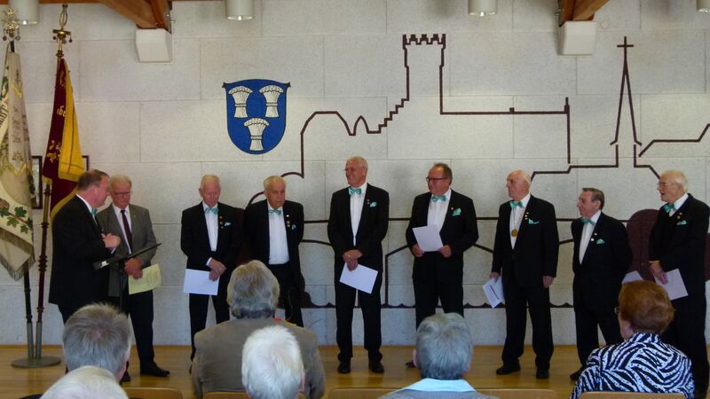 Ehrenvorsitzender Lubens Krekel wurde für 75 Jahre aktives Singen geehrt. Sicher ein ganz herausragendes Ereignis, was in der Vereinsgeschichte des Sängerbundes bisher einmalig ist. Geis nannte es zusammenfassend ein Leben mit und für den Sängerbund.