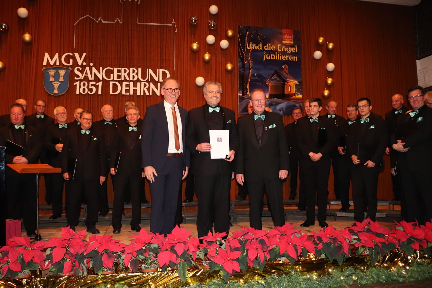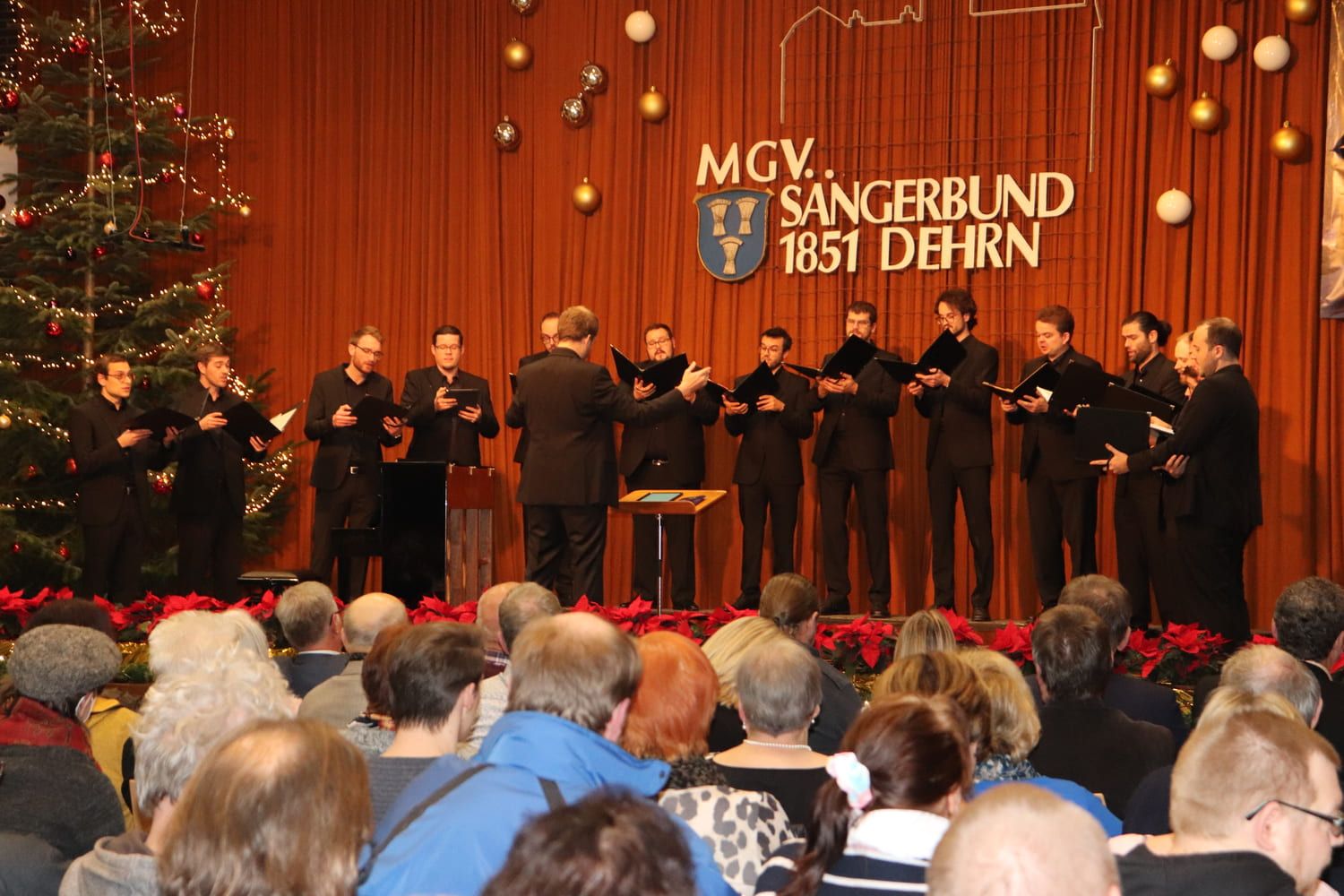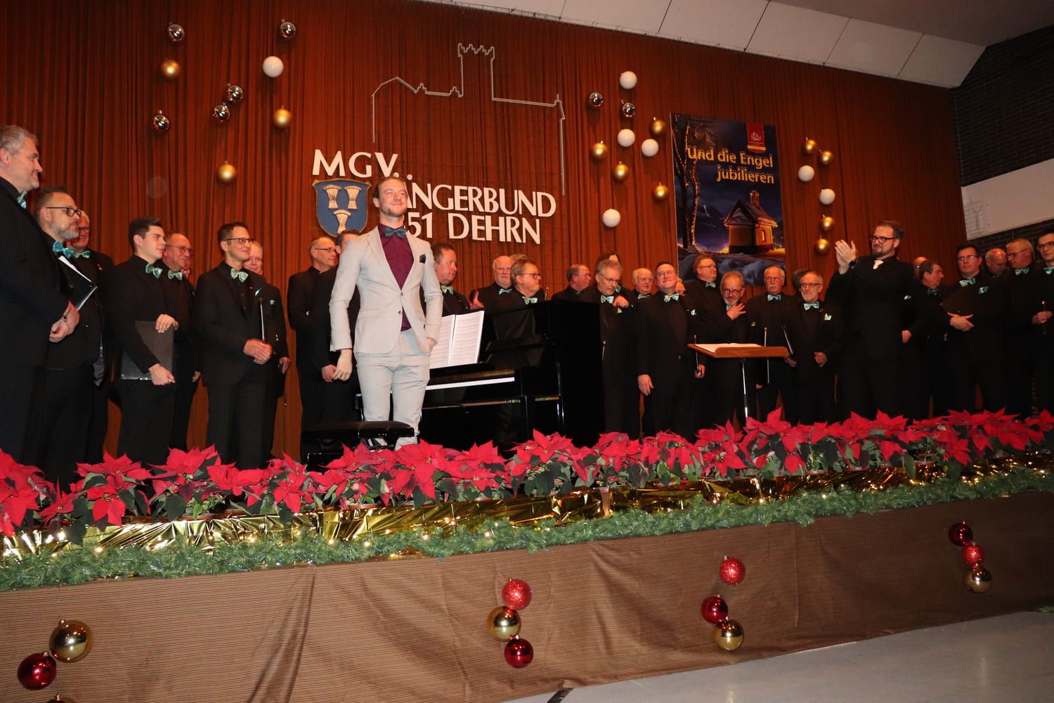 Der Sängerbund Dehrn selbst hatte sich für dieses Konzert natürlich auch einiges vorgenommen und ein Programm internationaler Advents- und Weihnachtslieder mit seinem Chorleiter, Sebastian Kunz, einstudiert. Dem Chor blieb die Eröffnung des ersten und zweiten Teils des Konzertes mit weihnachtlichen Liedbeiträgen vorbehalten.