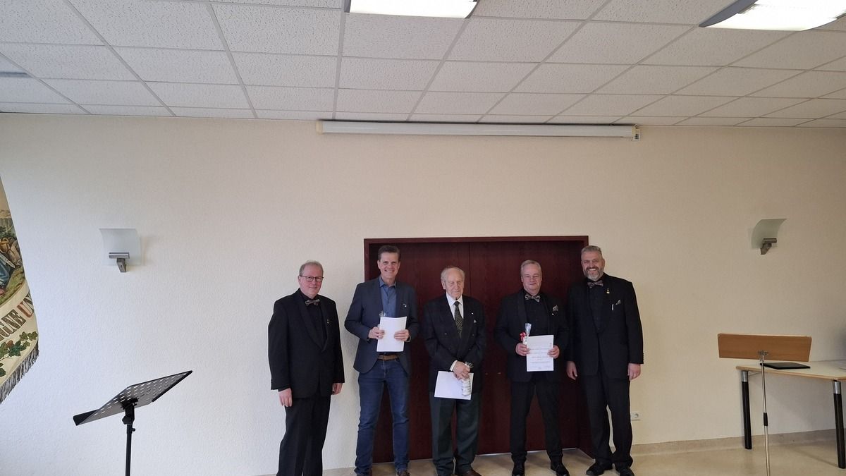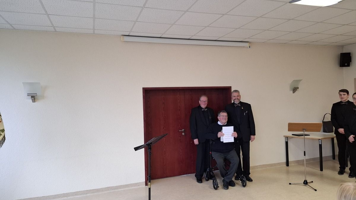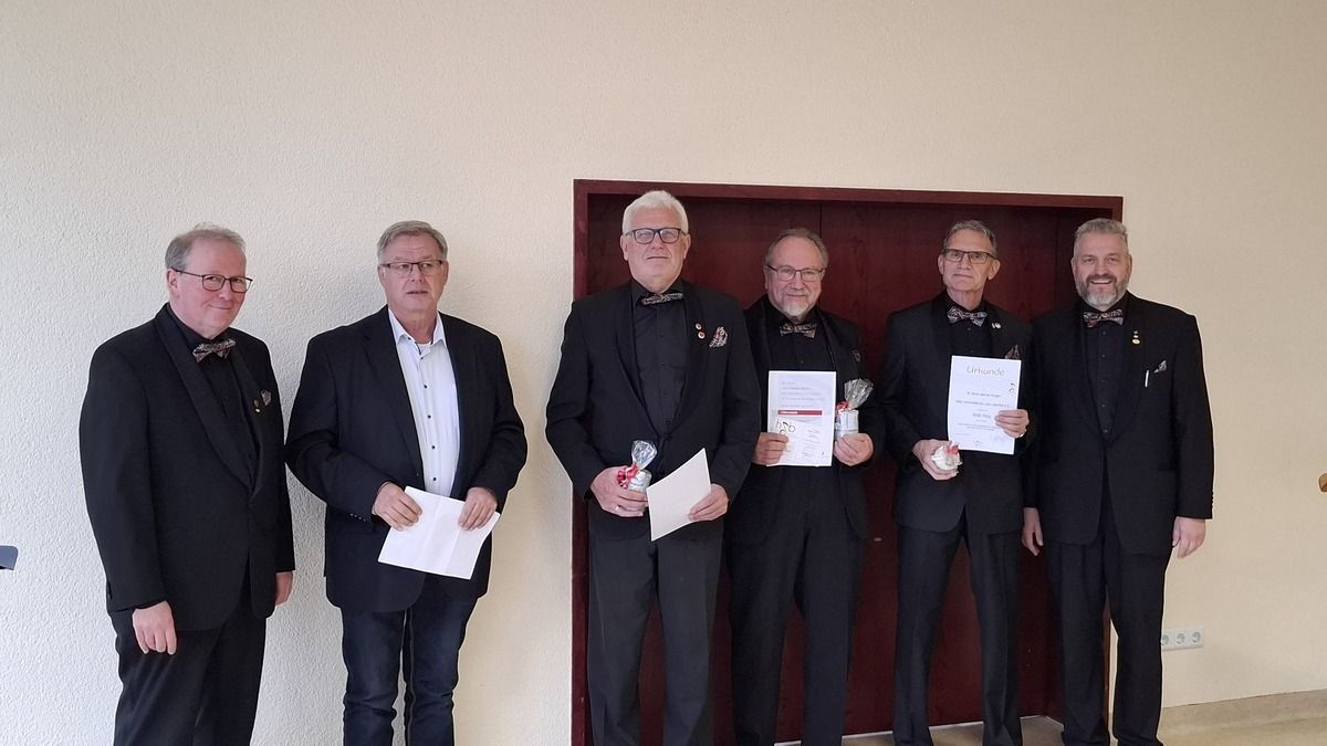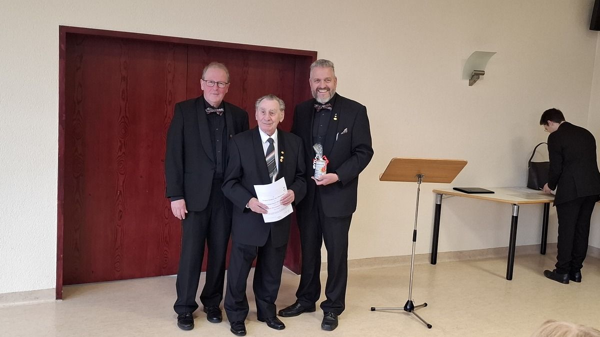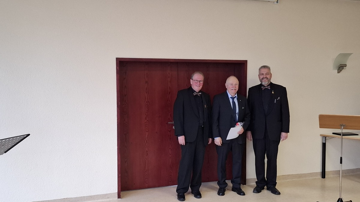 Georg Heun und Joachim Simon für 50 Jahre aktives Singen, Willi Pötz für 25 Jahre.