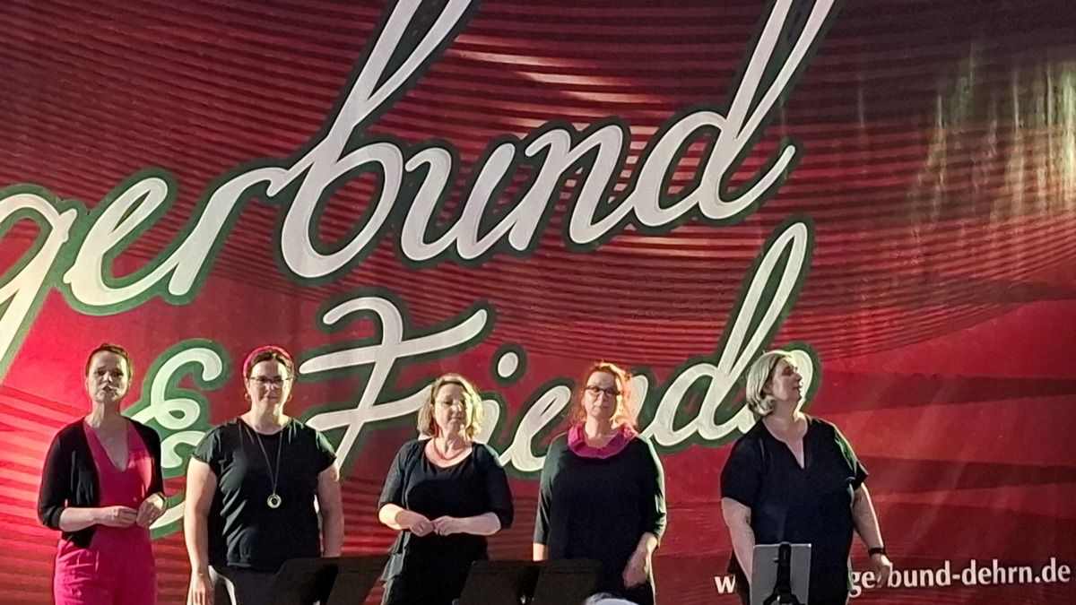 Für mitreißende Stimmung sorgte auch die Frauenformation „Singoritas“ aus Ingelheim. Die fünf Sängerinnen präsentierten sich charmant und voller Energie. Ihr Repertoire reichte von „Please Mr. Postman“ bis zu „Easy On Me“ und „Traust du dir“, wobei insbesondere „Bouncin’ In My New Shoes“ und „My One And Only Love“ großen Applaus hervorriefen.