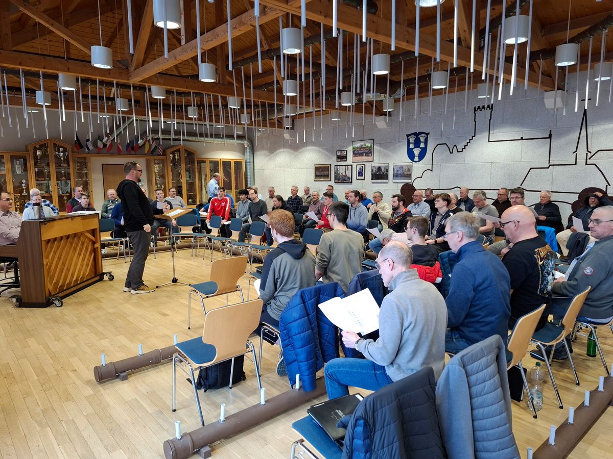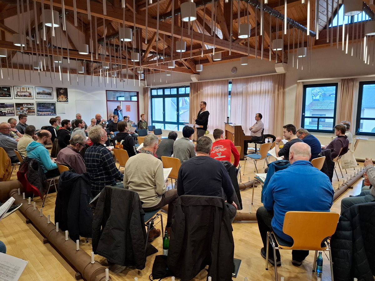 Mit rund 60 engagierten Sängern wurde in zwei Proberäumen des Bürgerhauses sowie im Feuerwehr- und Vereinshaus intensiv geübt. Unter der musikalischen Leitung von Chorleiter Sebastian Kunz und mit professioneller Unterstützung von Chorleiter Frank Hilgert wurde sowohl bewährte als auch neue Männerchorliteratur einstudiert. So können Sie sich schon heute auf Werke wie „Spanische Nächte; der Speisezettel oder Café Oriental“ und vieles mehr freuen.