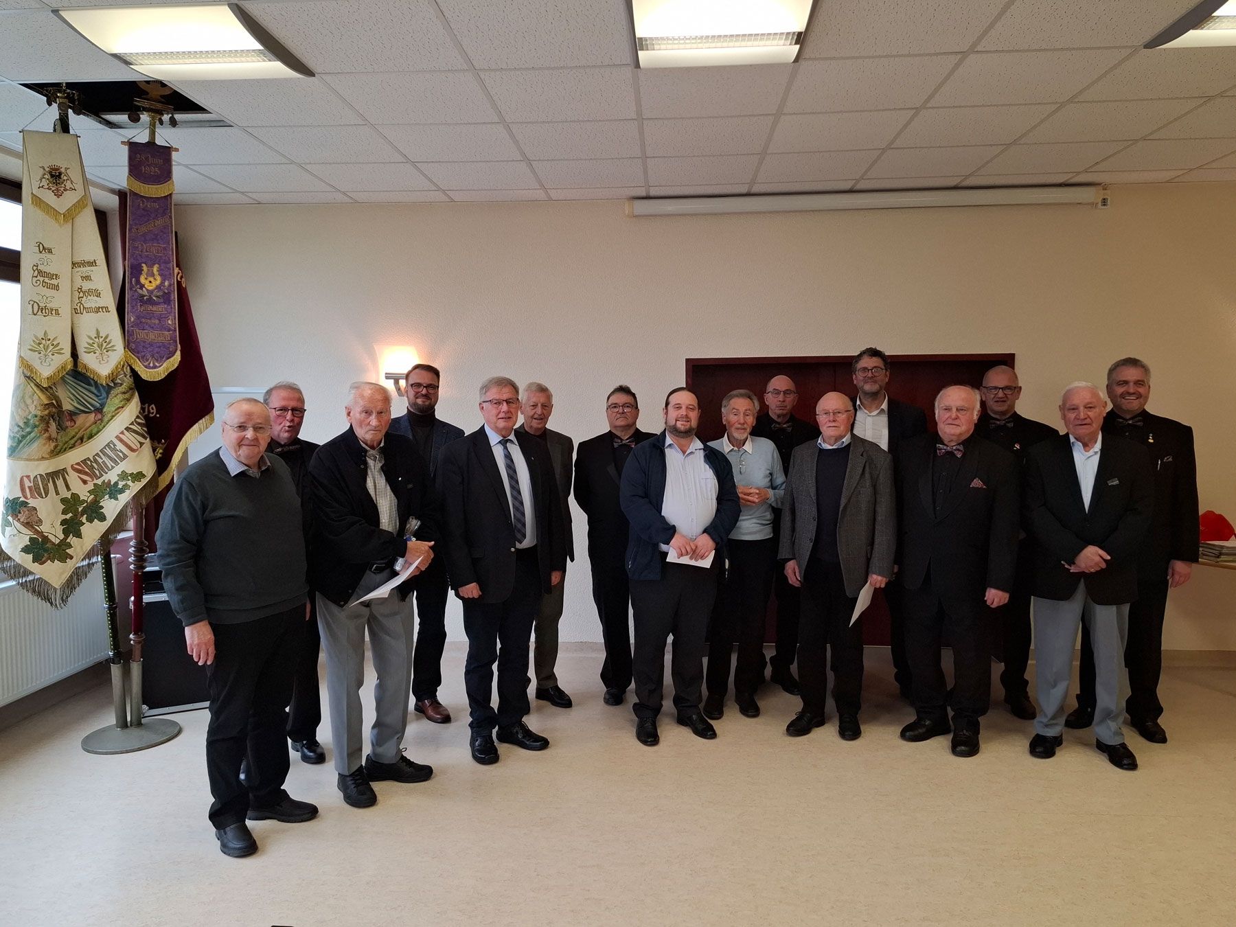Am 10. November 2024 fand sich die Sängerbundfamilie im Pfarrheim zu Dehrn zusammen, um in einem feierlichen Rahmen ihre verdienten Mitglieder zu ehren. Zuvor hatte der Sängerbund unter der Leitung von Sebastian Kunz um 11 Uhr einen Gedenkgottesdienst in der Pfarrkirche von Dehrn gestaltet. Dieser Gottesdienst war all jenen gewidmet, die dem Verein im Leben und im Gedenken verbunden sind.