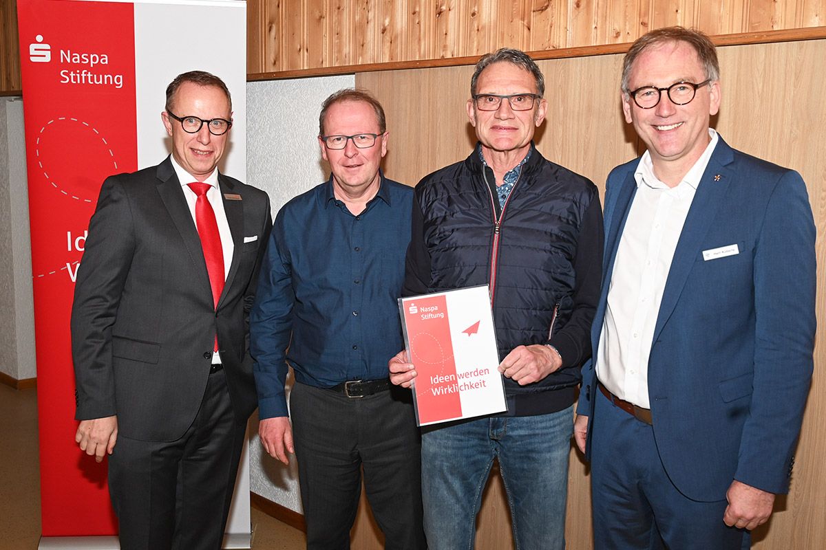 Die Fördermittel wurden von Frank Diefenbach, Vorstandsmitglied der Naspa, und Jens Prange-Wegmann, Geschäftsführer der Naspa Stiftung, zusammen mit Landrat Michael Köberle im Kreis Limburg-Weilburg für ehrenamtliches Engagement übergeben.